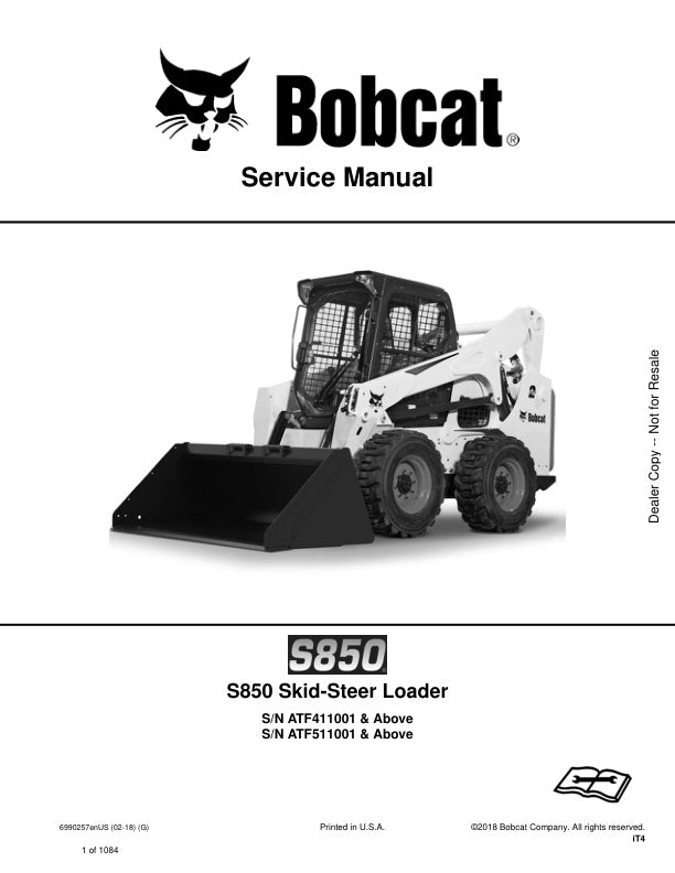 DOWNLOAD COMPLETE SERVICE MANUAL FOR BOBCAT S850 ATF411001 ATF511001 & UP SKID-STEER LOADER 6990257 - PDF DOWNLOAD