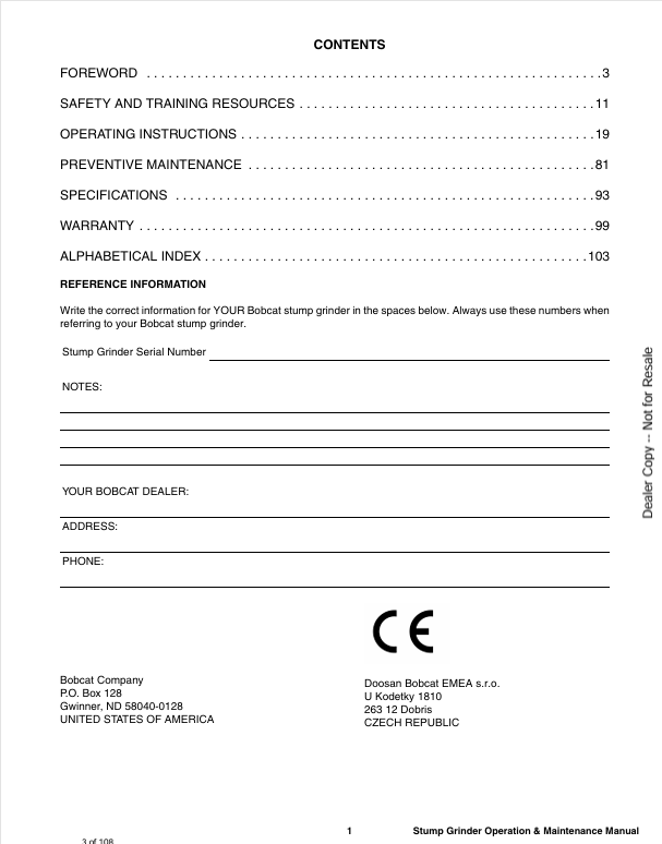 1. Inside this manual, you'll find step-by-step operational guidelines, safety precautions, and maintenance tips tailored specifically for the BOBCAT SG30. Whether you're a seasoned professional or a DIY enthusiast, this resource equips you with the knowledge to tackle any stump grinding task efficiently and safely.