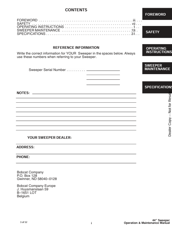 1. Enhance your Bobcat 44 Sweeper experience with the comprehensive Operation & Maintenance Manual (6901230) available for PDF download. This essential guide provides detailed instructions and insights to ensure optimal performance and longevity of your equipment.