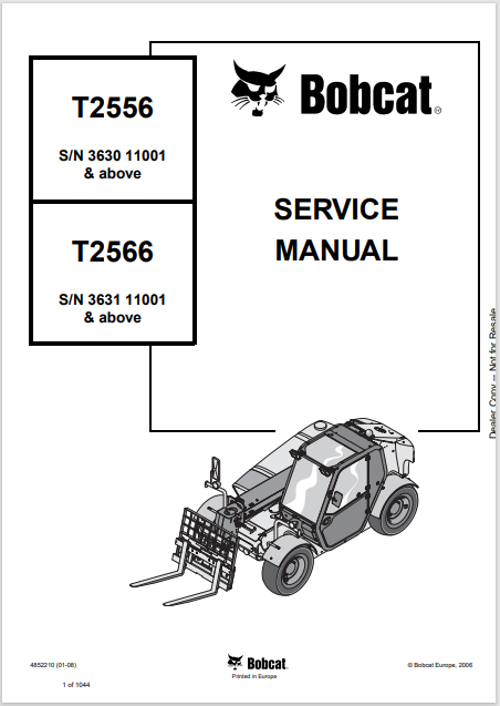 5. Find the BOBCAT T2556 and T2566 service manual (4852210) in PDF format. Access vital maintenance and repair instructions for efficient equipment management.