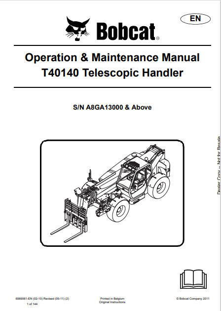 5. Download the BOBCAT T40140 telescopic handler operation and maintenance manual in PDF format. Ensure your equipment runs smoothly with expert guidance.
