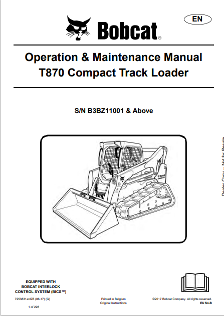 DOWNLOAD COMPLETE PDF FILE FOR BOBCAT T870 COMPACT TRACK LOADER OPERATION & MAINTENANCE MANUAL (7253831)