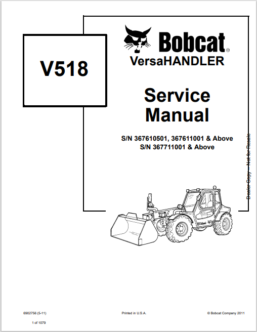 1. Discover the comprehensive service manual for the BOBCAT V518 Versahandler (6902756). Download the PDF for expert guidance and maintenance tips.