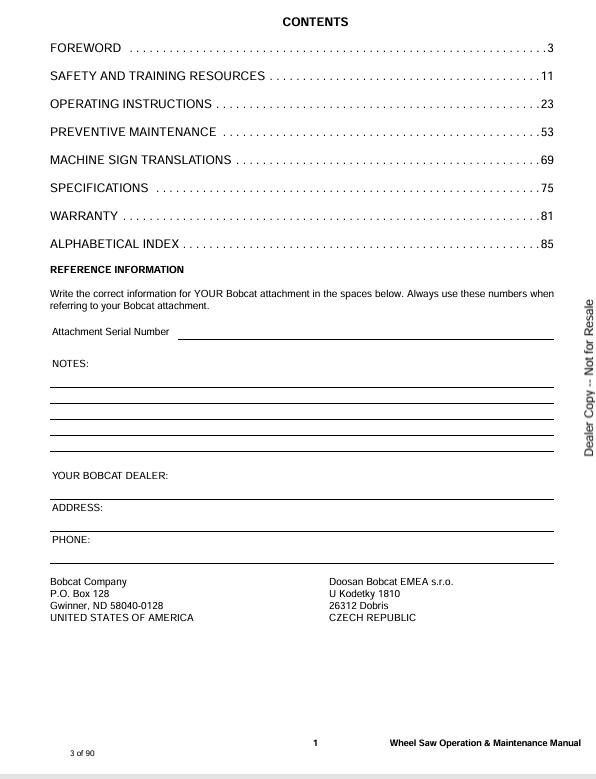 1. Enhance your operational efficiency with the BOBCAT Wheel Saw WS18 and WS24 Operation & Maintenance Manual. This comprehensive PDF download provides essential guidance for the effective use and upkeep of your wheel saw, ensuring you get the most out of your equipment.