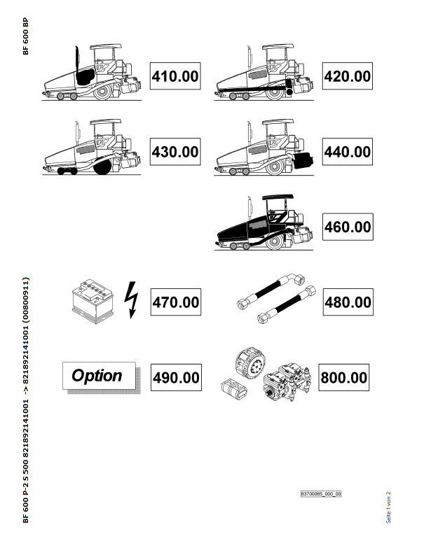 Download Complete Parts Catalogue Manual For BF 600 P-2 S 500 Asphalt Feeder | Serial Number - 00800911 | Pub. - 821892141001 -> 821892141001