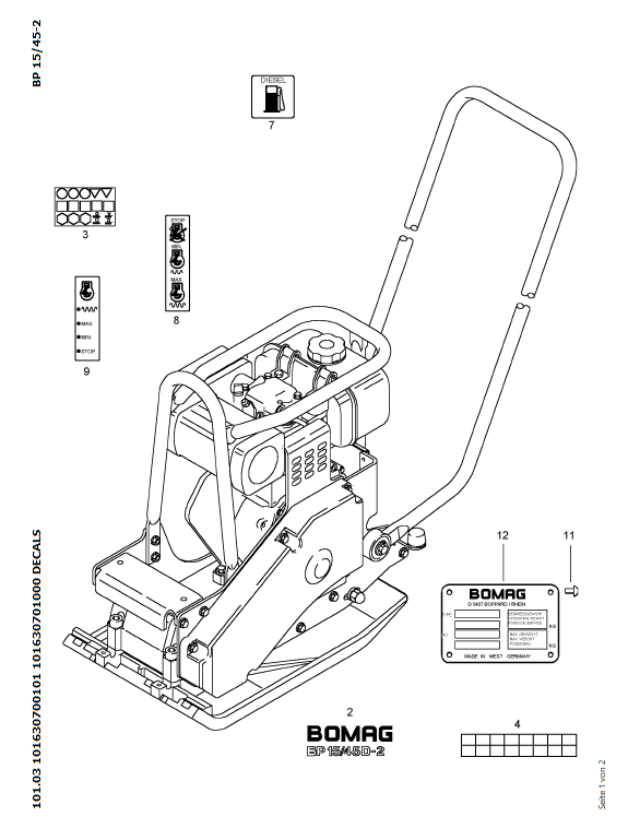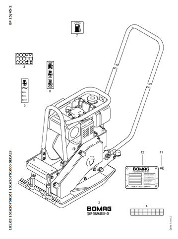 Download Complete Parts Catalogue Manual For Bomag BP 15/45 D-2 Vibrating Plates Non Reversible | Serial Number - 00811823 Pub. 101630701000