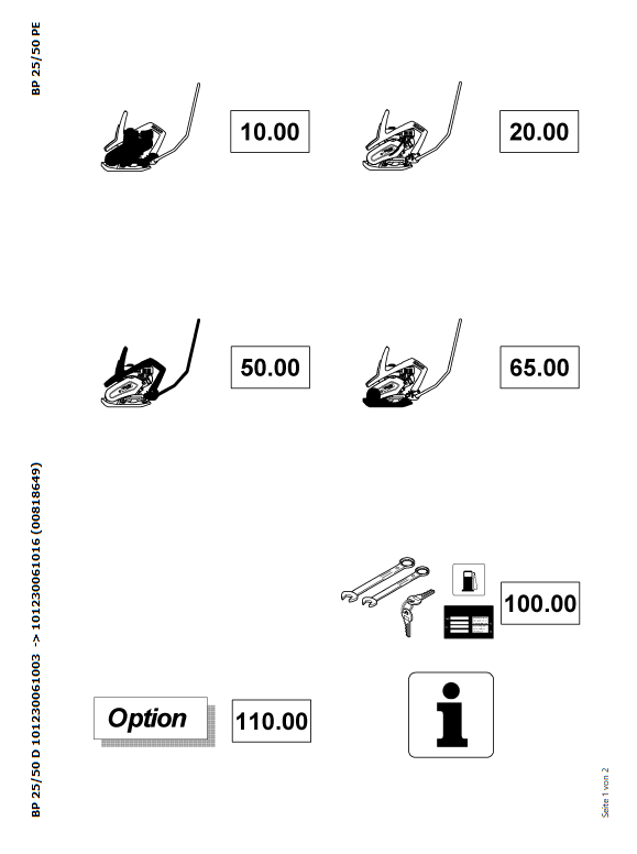 Download Complete Parts Catalogue Manual For Bomag BP 25/50 D Vibrating Plates Non Reversible | Serial Number - 00818649 | Pub. - 101230061016