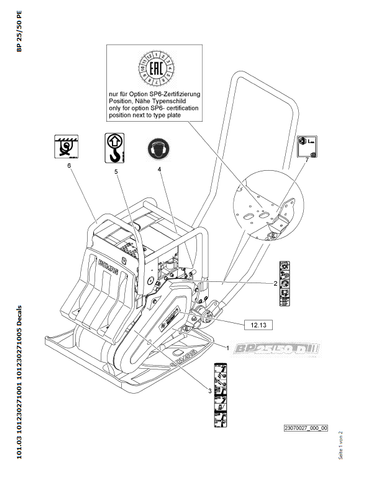 Download Complete Parts Catalogue Manual For Bomag BP 25/50 D Vibrating Plates Non Reversible | Serial Number - 00825033 | Pub. - 101230271134