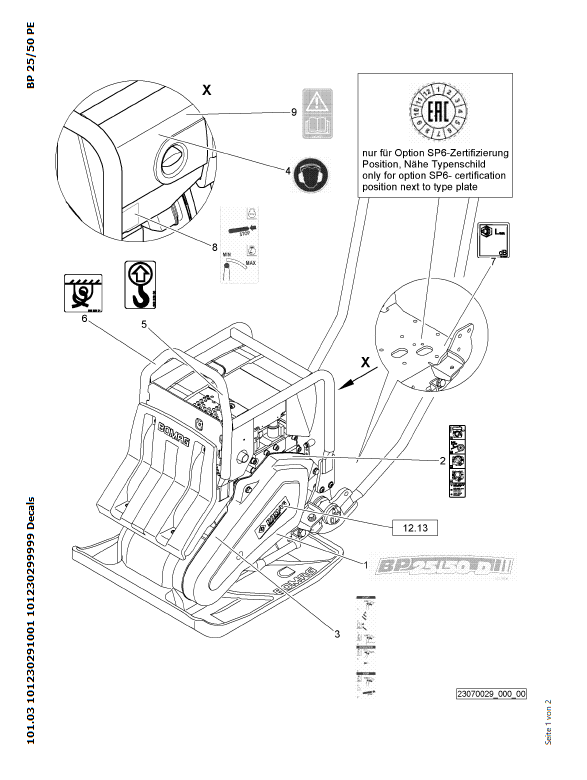 Download Complete Parts Catalogue Manual For Bomag BP 25/50 D Vibrating Plates Non Reversible | Serial Number - 00825129 | Pub. - 101230299999
