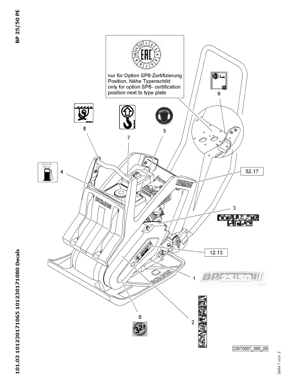 Download Complete Parts Catalogue Manual For Bomag BP 25/50 Vibrating Plates Non Reversible | Serial Number - 00824597 | Pub. - 101230121408