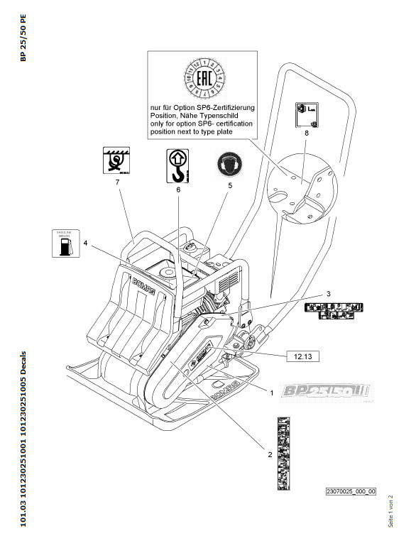 Download Complete Parts Catalogue Manual For Bomag BP 25/50 Vibrating Plates Non Reversible | Serial Number - 00825029 | Pub. - 101230259999