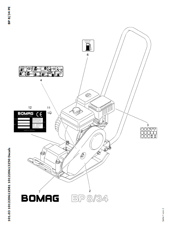 Download Complete Parts Catalogue Manual For Bomag BP 8/34 Vibrating Plates Non Reversible | Serial Number - 00817429 | Pub. - 101220619790