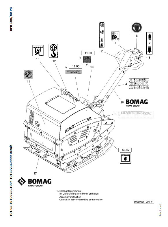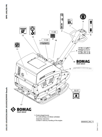 Download Complete Parts Catalogue Manual For Bomag BPR 100/80 D Reversible Vibrating Plates | Serial Number - 00824253 | Pub. - 101692361005