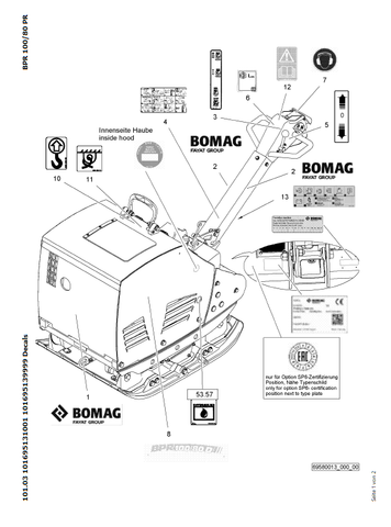 Download Complete Parts Catalogue Manual For Bomag BPR 100/80 D Reversible Vibrating Plates | Serial Number - 00825553 | Pub. - 101695131068