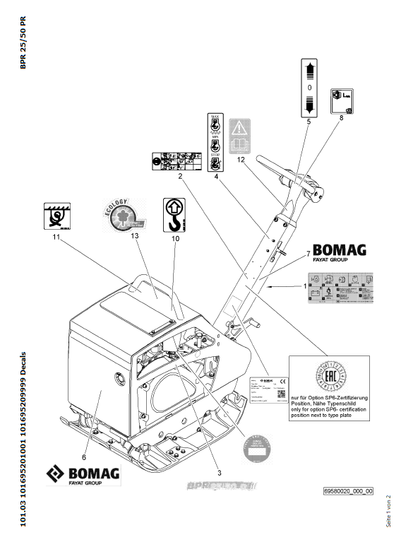 Download Complete Parts Catalogue Manual For Bomag BPR 25/50 D Reversible Vibrating Plates | Serial Number - 00825781 | Pub. - 101695209999