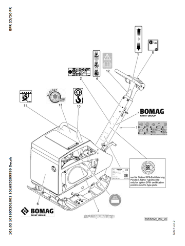 This official parts catalogue for Bomag BPR 25/50 D Reversible Vibrating Plates provides precise and detailed information on maintenance and repair. It includes detailed parts lists, diagrams, technical specifications, and up-to-date OEM part numbers. Access the most accurate and comprehensive information for the Bomag BPR 25/50 D with Serial Number 00825781 and Pub. 101695209999.