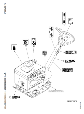 Access BOMAG BPR 25/50 Reversible Vibrating Plates Parts Catalogue Manual (Serial 00824307 - Pub. 101692529999) in PDF format to obtain clear instructions on installation, operation and maintenance of your product and all its parts. Save time and money and ensure the best performance with accurate parts info.