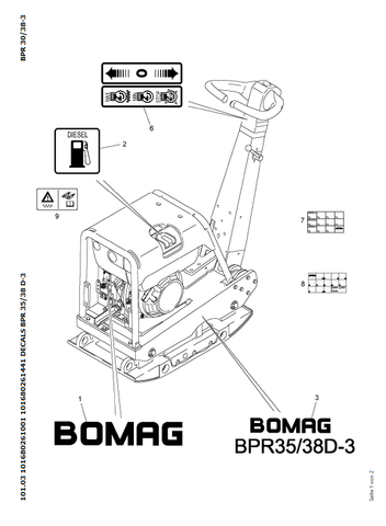 Get the official parts catalogue manual for your Bomag BPR 30/38 D-3 Reversible Vibrating Plate. Our comprehensive manual offers detailed diagrams and exact specifications for fast and easy repairs. Download the PDF file for Serial Number 00811418 and Pub. 101680261441.