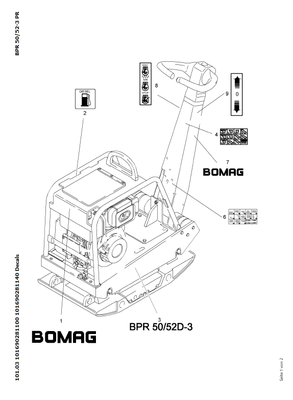 Get full access to all the parts and assembly diagrams you need for your Bomag BPR 50/52 D-3 Reversible Vibrating Plate with this fast and easy PDF download. This parts catalogue manual provides detailed diagrams, parts numbers, and comprehensive description for every assembly of your machine, ensuring precise maintenance and repair.