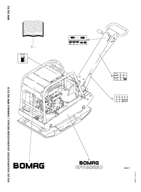 Download Complete Parts Catalogue Manual For Bomag BPR 50/52 D Reversible Vibrating Plates | Serial Number - 00813405 | Pub. - 101690103208