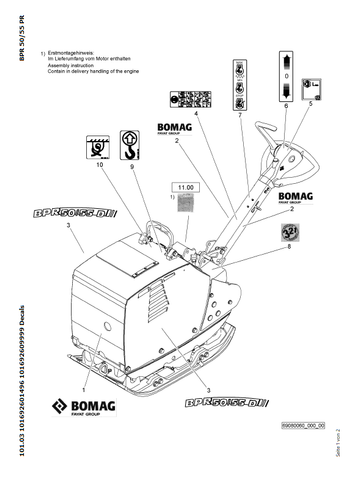 Download Complete Parts Catalogue Manual For Bomag BPR 50/55 D Reversible Vibrating Plates | Serial Number - 00824323 | Pub. - 101692601516