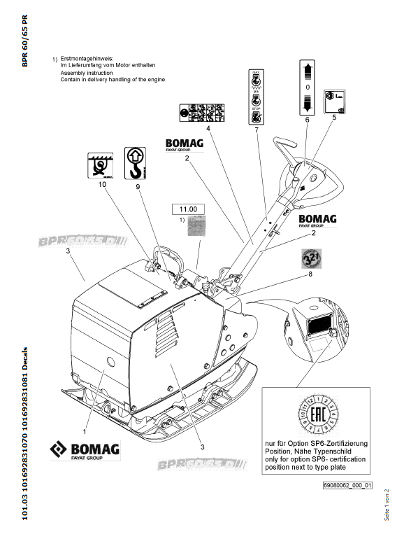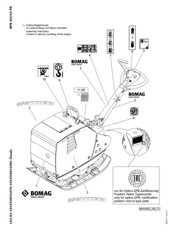 Download Complete Parts Catalogue Manual For Bomag BPR 60/65 D Reversible Vibrating Plates | Serial Number - 00824777 | Pub. - 101692831129