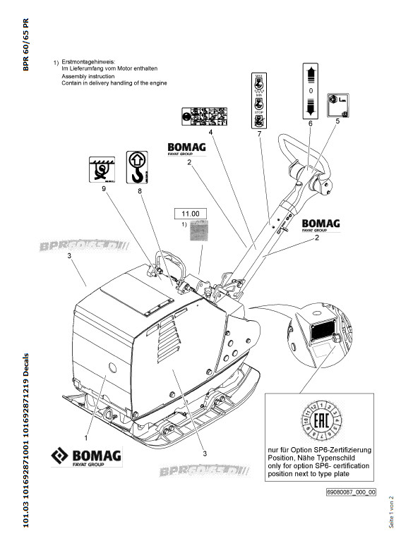 Download Complete Parts Catalogue Manual For Bomag BPR 60/65 D Reversible Vibrating Plates | Serial Number - 00825013 | Pub. - 101692879999