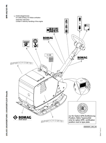 This complete parts catalogue manual offers detailed illustrations of Bomag BPR 60/65 D reversible vibrating plates. The manual includes accurate parts information and serial number 00825013, pub. 101692879999. Save time and money on repair and maintenance.