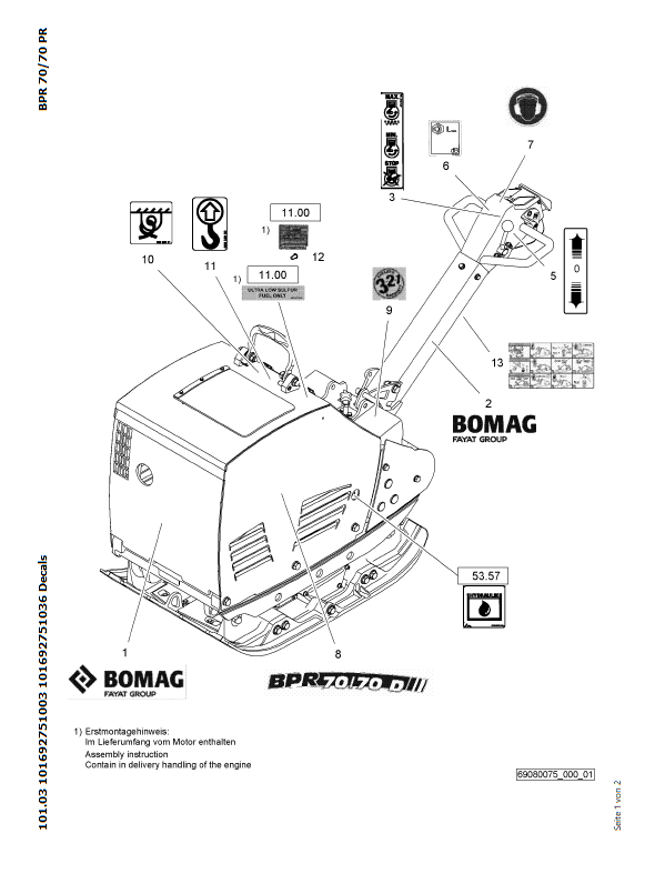 Download Complete Parts Catalogue Manual For Bomag BPR 70/70 D Reversible Vibrating Plates | Serial Number - 00824377 | Pub. - 101692751148