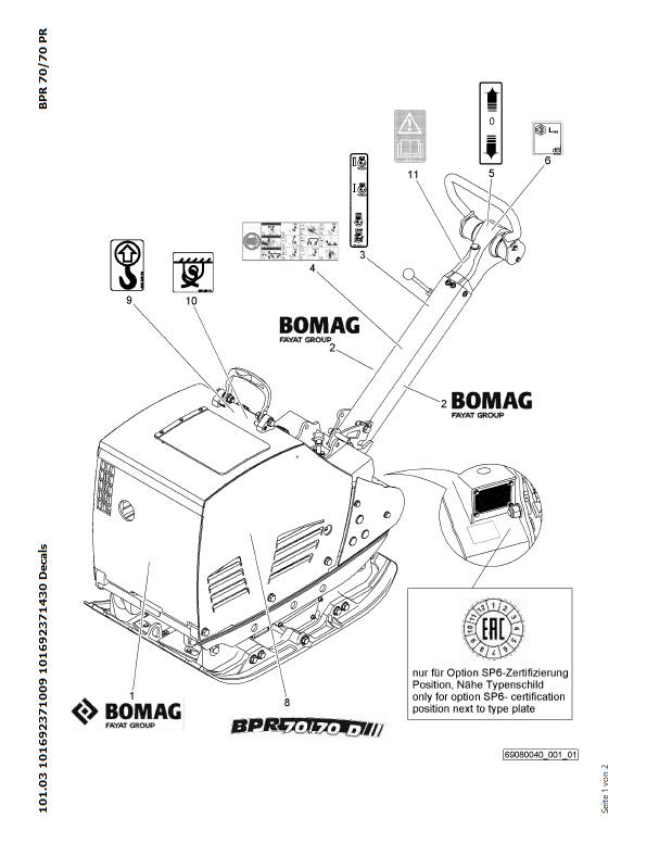 Download Complete Parts Catalogue Manual For Bomag BPR 70/70 D Reversible Vibrating Plates | Serial Number - 00825141 | Pub. - 101692379999