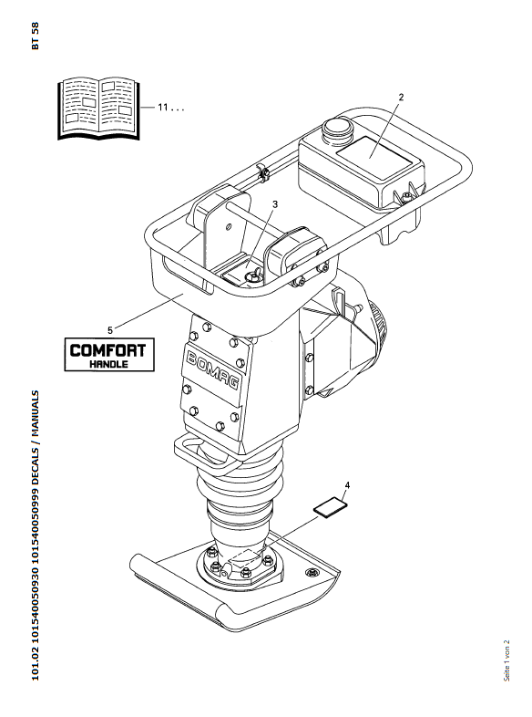 Download Complete Parts Catalogue Manual For Bomag BT 58 Tamper | Serial Number - 00811613 | Pub. - 101540050999