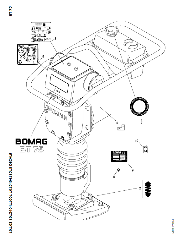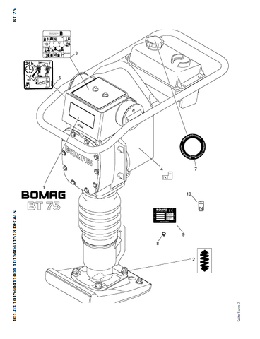 Download Complete Parts Catalogue Manual For Bomag BT 75 Tamper | Serial Number - 00811620 | Pub. - 101540419999