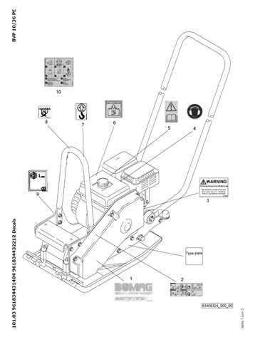 Download Complete Parts Catalogue Manual For Bomag BVP 10/36 Vibrating Plates Non Reversible | Serial Number - 00826199 | Pub. - 961834439999