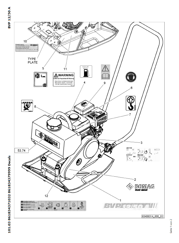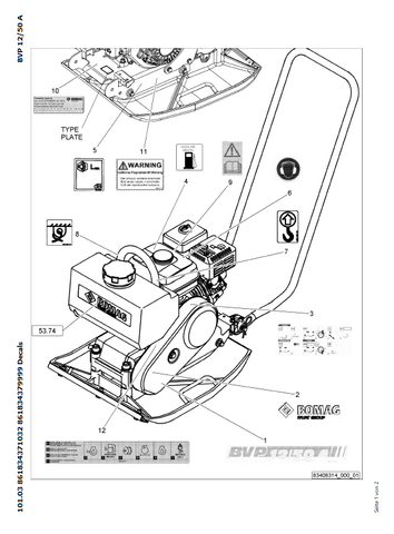 Download Complete Parts Catalogue Manual For Bomag BVP 12/50 A Vibrating Plates Non Reversible | Serial Number - 00825317 | Pub. - 861834379999
