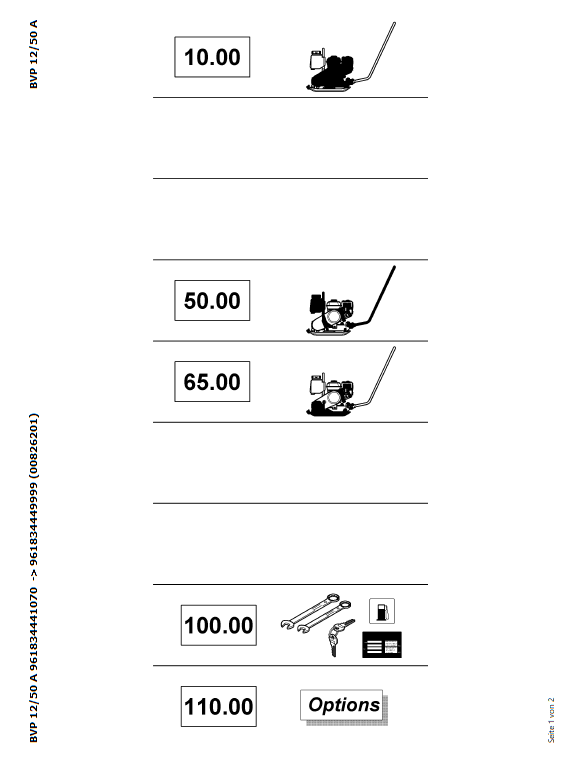 Discover all the components of the Bomag BVP 12/50 A Vibrating Plates Non Reversible with this detailed parts catalogue. Serial Number 00826201 and Pub. 961834449999 ensure accurate information and compatibility. Download the comprehensive PDF manual for machine maintenance and repairs.