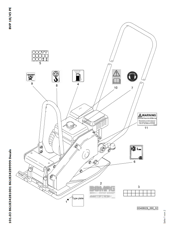 Download Complete Parts Catalogue Manual For Bomag BVP 18/45 Vibrating Plates Non Reversible | Serial Number - 00825249 | Pub. - 861834289999