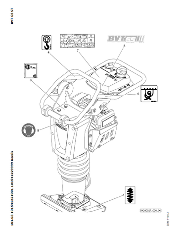 Download Complete Parts Catalogue Manual For Bomag BVT 65 Tamper | Serial Number - 00825153 | Pub. - 101541229999