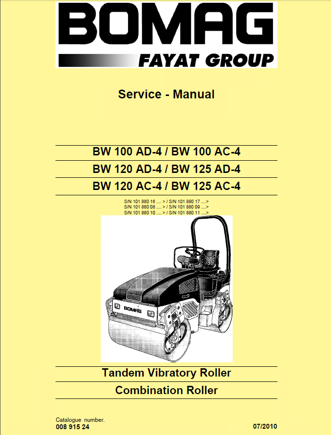 Gain a comprehensive understanding of your Bomag BW 100, 120, 125, AC-4 AD-4 Combination Roller with this Service Repair Manual. Expertly designed and backed by industry knowledge, this manual provides detailed instructions for maintaining and repairing your roller. Keep your equipment running at its best with this informative guide.