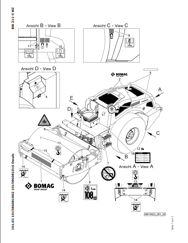 Download Complete Parts Catalogue Manual For Bomag BW 211 D-5 Earth & Sanitary Landfill Construction | Serial Number - 00824571 | Pub. - 101586081001 -> 101586089999