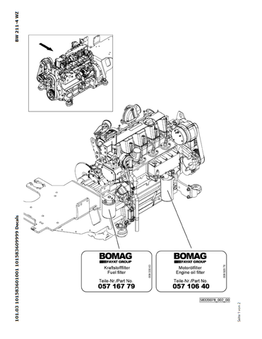 Download Complete Parts Catalogue Manual For Bomag BW 211 PD-4 Earth & Sanitary Landfill Construction | Serial Number - 00824391 | Pub. - 101583601001 -> 101583601011