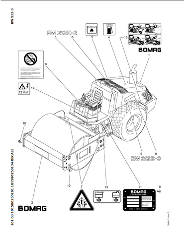 Download Complete Parts Catalogue Manual For Bomag BW 212 D-3 Earth & Sanitary Landfill Construction  | Serial Number - 00815325 | Pub. - 101580250101  -> 101580250134
