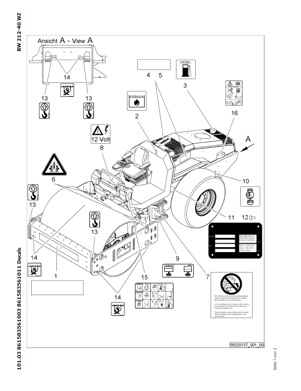 Download Complete Parts Catalogue Manual For Bomag BW 212 D-40 Earth & Sanitary Landfill Construction | Serial Number - 00824279 | Pub. - 861583561001 -> 861583561026