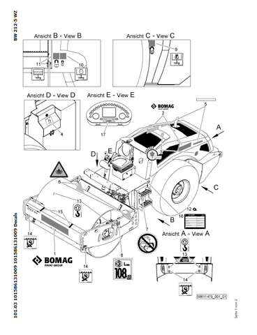 Download Complete Parts Catalogue Manual For Bomag BW 212 DH-5 Earth & Sanitary Landfill Construction | Serial Number - 00824727 | Pub. - 101586131001 -> 101586139999