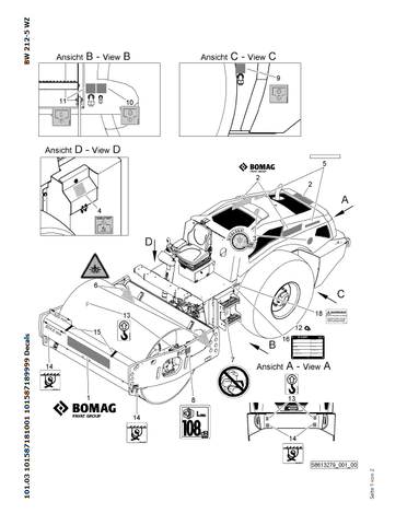 Download Complete Parts Catalogue Manual For Bomag BW 212 DH-5 Earth & Sanitary Landfill Construction | Serial Number - 00826069 | Pub. - 101587181001 -> 101587189999