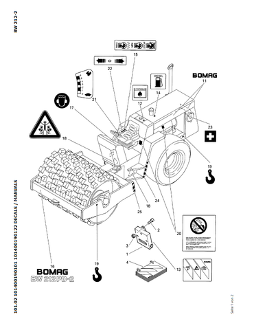 Download Complete Parts Catalogue Manual For Bomag BW 212 PD-2 Earth & Sanitary Landfill Construction  | Serial Number - 00810619 | Pub. - 101400190101  -> 101400190132