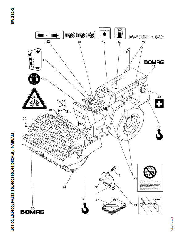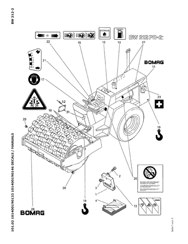 Download Complete Parts Catalogue Manual For Bomag BW 212 PD-2 Earth & Sanitary Landfill Construction | Serial Number - 00811619 | Pub. - 101400190133 -> 101400190146