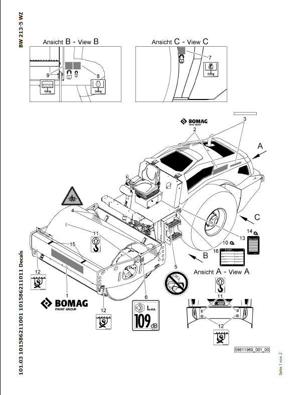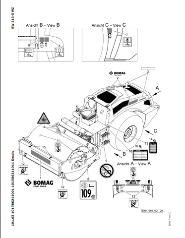 Download Complete Parts Catalogue Manual For Bomag BW 213 BVC-5 Earth & Sanitary Landfill Construction | Serial Number - 00824867 | Pub. - 101586211001 -> 101586211015