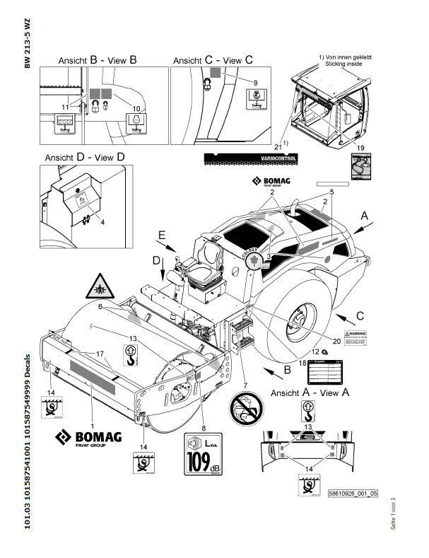 Download Complete Parts Catalogue Manual For Bomag BW 213 BVC+P-5 Earth & Sanitary Landfill Construction | Serial Number - 00826285 | Pub. - 101587541001 -> 101587549999