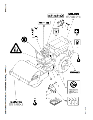 Download Complete Parts Catalogue Manual For Bomag BW 213 D-2 Earth & Sanitary Landfill Construction | Serial Number - 00810627 | Pub. - 101400270101 -> 101400270144