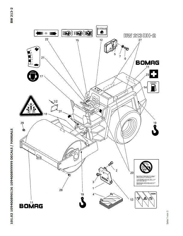 Download Complete Parts Catalogue Manual For Bomag BW 213 DH-2 (2A) Earth & Sanitary Landfill Construction | Serial Number - 00811641 | Pub. - 109400890136 -> 109400899999